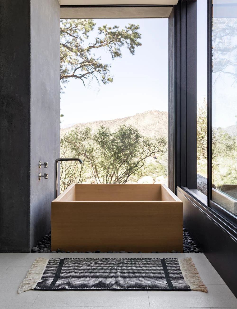 Striking a modern tone, our Ines Mat is handwoven from 100% cotton for a natural touch that is quick-drying and soft on the feet. The thick fringe and high contrast design layer vibrant texture into an entryway, bathroom, or kitchen.